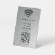 Eleva tu espacio con este minimalista y moderno cartel de mesa, ofreciendo a los huéspedes una forma gratuita de conectarse a tu WiFi. Carga tu código y logotipo QR personalizado y muestra tu nombre de red y contraseña de forma transparente con letras blancas nítidas. Un toque elegante y funcional para cualquier entorno, perfecto para negocios, cafés o eventos.