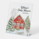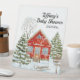 Un bonito diseño Baby Shower con un fondo de invierno festivo con abetos y una casa roja. Puede personalizar esto con sus propios detalles. Un bonito y encantador diseño invernal.