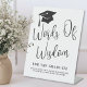 Celebrate your graduate with a simple and meaningful tabletop sign designed for sharing advice and well wishes. This small graduation party sign reads “Words of Wisdom for the Graduate,” with “Words of Wisdom” written in elegant handwritten script and “for the Graduate” shown in clean, simple fonts for a balanced, easy-to-read look.