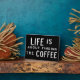 A través de ojos sombríos por la mañana. En el camino. En la oficina. La vida es encontrar el café.