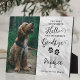 Placa conmemorativa de pérdida de mascota con un fondo de efecto de mármol elegante, la inicial y nombre de su perro, una foto de su perro o gato, huellas de patas de corazón, y una cita de condolencias que dice 'tú eras mi saludo favorito y mi adiós más difícil'.