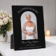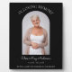 Placa conmemorativa funeral personalizada negra con una gran foto de su ser querido, el texto en memoria de , su nombre, fechas de nacimiento y fallecimiento, y el dicho conmemorativo siempre te llevaremos en nuestro corazón.