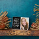 Este divertido diseño de graduación incluye texto con letras a mano, fuegos artificiales de oro y estrellas en un fondo negro audaz.