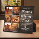 Placa conmemorativa de mascota personalizada que presenta un efecto de madera rústica de fondo, un collage de 6 fotos de tu amado animal, una cita de condolencias que dice "tu vida fue una bendición, tu recuerdo es un tesoro, eres amado más allá de las palabras y extrañado más allá de lo que se puede medir", una huella de pata con un corazón de amor, el nombre de tu perro o gato, y su fecha de nacimiento y fallecimiento. Esta placa conmemorativa de mascota es fácil de personalizar y es el regalo de condolencias perfecto para ti, tu familia o amigos para honrar a esas mascotas especiales que ya no están con nosotros.