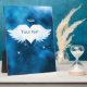 Crea tu propia placa de exhibición conmemorativa personalizada única. Un regalo personalizado encantador y hecho desde el corazón para cualquier persona que esté de luto por la pérdida de un ser querido cuando no tienes las palabras para expresar cómo te sientes. Hermosas alas de ángel de plumas blancas con un corazón blanco en el medio y una aureola encima. Tiene un haz de luz que brilla desde arriba y 3 pequeños corazones blancos flotantes debajo con un fondo de noche estrellada azul y negro. También es adecuado para memorial de mascotas. Se puede personalizar con el nombre de tu ser querido.