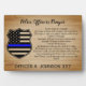 Plaque de oración de oficial de policía con un diseño rústico de madera con placa de policía con delgada línea azul de la policía. Este regalo de oración de la policía es perfecto para todos los regalos de graduación de oficiales de policía, fuerzas del orden y academia de policía. Visita nuestra colección para tarjetas de oración de la policía y regalos de oración de oficiales de policía. Personaliza con el nombre y número de placa de los oficiales de policía. DERECHOS RESERVADOS © 2021 Judy Burrows, Black Dog Art - Todos los derechos reservados.