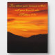 Una placa decorativa con una foto a todo color de una bella puesta de sol y el inspirador verso de la Biblia "Para dónde está tu tesoro también estará tu corazón". Mateo 6:21