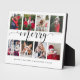 Envíe un hermoso regalo personalizado a sus amigos y familiares que apreciarán para siempre. Placa especial personalizada de collage de fotos familiares para mostrar sus propias fotos y recuerdos familiares especiales. Nuestro diseño presenta un sencillo diseño de cuadrícula de color de 8 fotos con "Merry" diseñado en un hermoso estilo de escritura negra manuscrita. Cada foto está enmarcada y centrada en un simple borde de color dorado. Personalizar con apellidos.