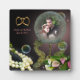 Retrato de fantasía de Crystal Ball con lirios y perlas. placa fotográfica para aniversario, boda, cumpleaños o cualquier otra foto conmemorativa de ocasión especial. Esta es una placa impresa sin adornos separados. Perfecto para un regalo boda o recuerdo de una ocasión especial. Diseño único con imagen de una vieja bola de cristal ornamentada. Sube tu propia foto para un regalo verdaderamente único y personal.