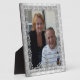 placa fotográfica del 25° aniversario. Silvery Satin look con diseño de fibra de plata y texto, "25 Aniversario. Esta es una placa impresa sin adornos separados. Perfecto para un regalo fotográfico fiesta de aniversario.
