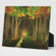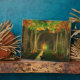 Una gran sala excavada en el lado de la colina, y a lo largo de cada pared una nave de árboles. En el extremo opuesto una bahía poco profunda con un techo abovedado, y un pequeño arroyo que tintinea por la pared como una fina cortina delante de ella. En la bahía una mesa y dos vasijas, que brillan con una luz dorada y verde. La mezcla de las dos luces es como el sol de verano brillando a través de árboles jóvenes. Los árboles también brillan, cada hoja delineada con luz, verde, dorado y rojo.