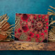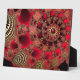 Un brillante diseño fractal con espirales ornamentales de rojo oscuro y vívido, recubierto de fibra de oro como conchas metálicas y lleno de rúbricas brillantes.