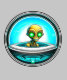 Alien en un platillo volador ai personalizado de arte. Extra terrestre y OVNI para los creyentes.