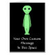 Una imagen de un carácter extranjero feliz, este extranjero está en verde con los ojos morados grandes.