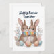 Celebra la alegría de Pascua con esta adorable y caprichosa tarjeta de Pascua con dos adorables conejillos envueltos en una acogedora bufanda de color arcoiris. El fondo pastel, los delicados acentos florales y los huevos decorados con gusto crean un ambiente acogedor, perfecto para difundir la alegría de Pascua. El mensaje "Feliz Pascua Juntos" hace de esta la carta ideal para parejas, familias y amigos que valoran el espíritu de unión. Ya sea que envíe cálidos deseos a sus seres queridos o que añada un toque único a sus regalos de Pascua, esta tarjeta seguramente traerá una sonrisa.