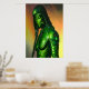 Un extraterrestre con miedo verde con armadura y casco verdes. Este es un arte generado por IA.