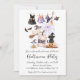 Celebra Halloween con estilo con esta encantadora invitación que incluye gorras de brujas, disfraces espeluznantes, calabazas, gatos negros y murciélagos juguetones. Perfecto para fiestas, reuniones familiares o eventos festivos. Personaliza tus detalles para un toque mágico.