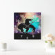 El extremo de la silueta del rastro con el reloj de pared de la aurora boreal