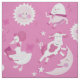 La esta tela de los niños ilustrados ofrece a algunos de sus favoritos de la mamá ganso en una paleta de colores rosada brillante. Es perfecta para cualquier cuarto de niños o el sitio del niño.