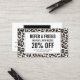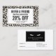 Coordina con las pestañas con la plantilla de la tarjeta de presentación Leopard Print antes de las 12.01 horas. Actualice el texto de promoción de su oferta deseada. Genere más ventas y visitas de sus clientes motivadores para consultar a sus amigos para un servicio con descuento o un producto gratis. Ideal para los salones de extensión de ceniza, los bares de ceniza, los maquilladores y más. Arte y diseño © 1201AM Design Studio | www.1201am.com