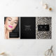 Una glamorosa impresión de leopardo/animal llena el fondo de este folleto de 5 x 7 tríplios sobre la belleza. Los latigazos blancos descansan sobre tu nombre o nombre comercial para un logotipo instantáneo. Creados para salones de extensiones de eyelash, maquilladores, especialistas en belleza y más - estos folletos de tamaño más pequeño son perfectos para mostrar sus listas de precios y menú de servicios. Una gran pieza de marketing para repartir a los clientes potenciales para que introduzcan rápidamente su negocio. Póngase en contacto con el diseñador para obtener ayuda sobre la composición tipográfica o las variaciones de diseño. Arte y diseño © 1201AM Design Studio | www.1201am.com