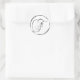 F Monograma Sobre Plata Faux O Sello Favor. Estos pegatinas redondos clásicos están impresos con tinta no metálica en un pegatina plano para que parezca plata. No son biselados ni monogramos grabado en relieve, pero están diseñados para parecer biselados o monogramas grabado en relieve. Estos sellos monográficos plateados se imprimen sobre un fondo blanco a menos que seleccione un fondo de color diferente antes de proceder a la desprotección. Además de ser material de papelería para bodas bonitos, estos elegantes sellos para sobres de invitación a la boda también hacen grandes sellos de tarjetas para personalizados monogramados, pegatinas de sello para sobres de tarjetas de felicitación de vacaciones personalizadas y pegatinas de sellos monográficos de tarjetas de Navidad personalizadas.