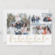 Una elegante tarjeta de vacaciones con foto que incluye tus 4 fotos favoritas y el nombre de tu familia y la fecha en tipografía moderna clásica con un mensaje de Navidad en letra script chic. Diseñado por Thisisnotme©