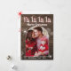 fa la la, feliz navidad arco de navidad foto rústico de la tarjeta de vacaciones en la parte trasera del mensaje de vacaciones.