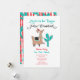 Fa la llama Feliz Navidad invitaciones de invierno con una Llama vestida para las vacaciones usando un sombrero de santa con cintas y arcos alrededor de su largo cuello, bailando alegremente al lado de un cactus de navidades. ¡Elemento que coincide con este! ¡Genial para cualquier edad! Simplemente cambia la foto mostrada con tu foto Necesita ayuda con el diseño, sólo envíame un correo electrónico a tkatz@me.com ilustracion dibujado por mano de McBooboos