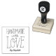 Esta estampilla de goma presenta un caprichoso mensaje con letras a mano "hecho a mano con amor" y puede ser personalizado con tu nombre. Perfecto para los artesanos, los alevines y cualquiera que crea a mano. ¡Una gran idea de regalo también!