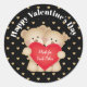 Estos dos adorables osos de peluche tienen un mensaje de San Valentín para ti. Su corazón rojo les está haciendo saber que "se hicieron el uno para el otro". Este diseño está puesto sobre un fondo negro con corazones dorados. Texto a personalizar.