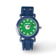 Fácil de decir el reloj del niño de la hora con un nombre personalizado. Relojes de muñeca personalizados impresos con nombres o letras de monograma. Idea de regalo de cumpleaños para niños y chicas. Diseño deportivo con bisel numerado. Los regalos para niños con diseño de marcado sencillo para un aprendizaje fácil. Perfecto para el hijo, nieto, sobrino, nieto, amigo, etc. Fondo de color verde o personalizado. Correa de cuero negra.
