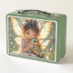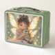 A cute personalized lunch box featuring a sweet little fairy girl holding her baby dragon. Cute anime chibi illustration.