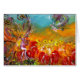 A flower faery is playing lyra on the flowers.Vibrant and whimsical acrylic painting with golden and silver foil .