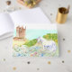 Fantástico libro de bodas con temática de cuento de hadas, con una hermosa acuarela y obras de arte digital de un castillo y un unicornio blanco en el jardín de flores. Personalice todo el texto para su boda del Renacimiento.