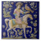 Esta baldosa presenta un halcón a caballo en un campo de flores. En azul cobalto vibrante con tonos marfil, gris, rosa, beige, azul claro, dorado, verde y amarillo. Es lo suficientemente agradable como para enmarcar y colgar una pared, usarla como una baldosa, triveta, montaña o ponerla en un pequeño asel como objeto artístico. También hace grandes azulejos acentos para chocar con los dientes y las baldosas en la cocina, baño o ducha.