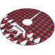 Esta falda del árbol de navidad tiene un modelo de la tela escocesa del control del búfalo rojo y negro con una silueta del lobo blanco en el frente de la parte inferior de la falda que contiene su apellido en escritura rústica. ¡Una qué falda fantástica del árbol para una cabina o una casa de cazadores!