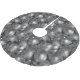 Una falda de plata de árbol de Navidad con un patrón de Navidades plateados metálicos y decoraciones de árboles de Navidad para agregar un elegante aspecto a tu árbol de Navidad esta temporada de fiestas.