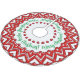 Los corazones de caramelos rojos forman un anillo en el centro de esta falda de árbol de Navidad. Cambia el texto actual, "¡Feliz Navidad!" a tu propio saludo para personalizar tus decoraciones navideñas.
