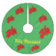 Falda de árbol de Navidad de Poinsettia con la frase Feliz Navidad. Esta hermosa falda de árbol puede ser justo lo que tu árbol de Navidad necesita. Esta falda arbórea es muy colorida y puede traer alegría a tu exposición decorativa.