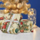 This whimsical Santa tree skirt exudes a playful nostalgia, transporting you to a bygone era of holiday cheer. The background is a warm, creamy beige reminiscent of vintage parchment, allowing the vibrant illustrations to pop with festive merriment.