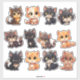 Doce adorables pegatinas de gatos en una sábana. Estos pegatinas de gatos son cortados, por lo que pueden ser retirados individualmente de la sábana. Son geniales para deslumbrar tu libro de recortes y tu planificador diario o mensual. También se pueden usar como pegatinas de recompensa o para decorar tu botella de agua.