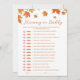Añade diversión a tu ducha de bebé de otoño con esta tarjeta de juego de bingo de Baby Shower de otoño personalizada! Una actividad perfecta para los huéspedes, esta tarjeta de juegos combina los acogedores temas de las duchas de otoño con los encantadores diseños de temporada. Ideal para quien busca ideas de ducha de bebé con temática de otoño, ideas de ducha de bebé en caída libre o ideas de ducha de bebé en octubre. Ideal para el otoño con ideas de ducha de bebé y para complementar cualquier ducha de bebé o de caída con un toque festivo.