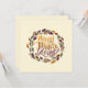 Tarjeta de saludo de Acción de Gracias con las palabras "Feliz Día de Acción de Gracias" rodeadas por una corona de hojas caídas. Añade tu propio mensaje al reverso.