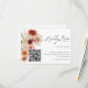 Reúna fácilmente respuestas con esta tarjeta RSVP de flor silvestre de otoño que incluye un escaneado código QR. Personalizar con tu enlace RSVP y detalles de invitados, perfecto para bodas rústicos de otoño. Mira la colección completa para ver las piezas coincidentes.