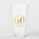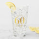 Vidrio elegante que ofrece las palabras "alegrías a 60 años" en falso efecto metalizado de oro.