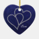 Dos corazones hechos del diamante de imitación bling del estilo - diamantes que conectan y que enlazan sobre uno a en un fondo profundo del azul real con un modelo sutil del damasco en él. Grande para las bodas, aniversario, compromiso, celebración del amor, romance, pares. Cuelgue de su árbol de navidad año tras año en honor del año dado o celebrado. Modifique el texto para requisitos particulares para adaptarse o para enviarme por correo electrónico a aquí si usted necesita ayuda con modificar para requisitos particulares o la imagen puesta sobre otros productos de Zazzle en mi tienda. ¡Si puedo… lo voy a hacer! ~:)