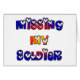 Estos desaparecidos mi diseño de Solider son grandes para siempre su soldado está ausente durante una movilización. ¡Dejado cada uno sepa que usted falta a su soldado! Este diseño es grande para los niños y los adultos igualmente y él hace una gran idea para un regalo.