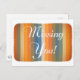 Envía un mensaje para decirles que te las pierdes con una de nuestras postales personalizados. Decorada con un hermoso diseño de manta naranja, azul y amarillo con letras guiñadas a mano la frase "Te falta" en el frente. Personalizar la parte posterior con tu dirección. Ver nuestra selección completa de tarjetas de felicitación en nuestra tienda Zazzle!