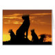Una madre chita y sus tres cachorros se conforman para la noche mientras el sol se pone detrás de ellos. Sus siluetas se oponen marcadamente a los colores llamativos de la puesta de sol. Arte por computadora de Kathie Miller.